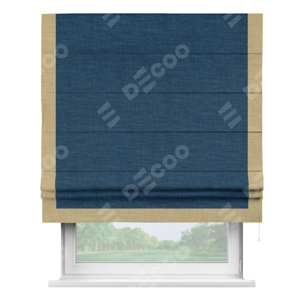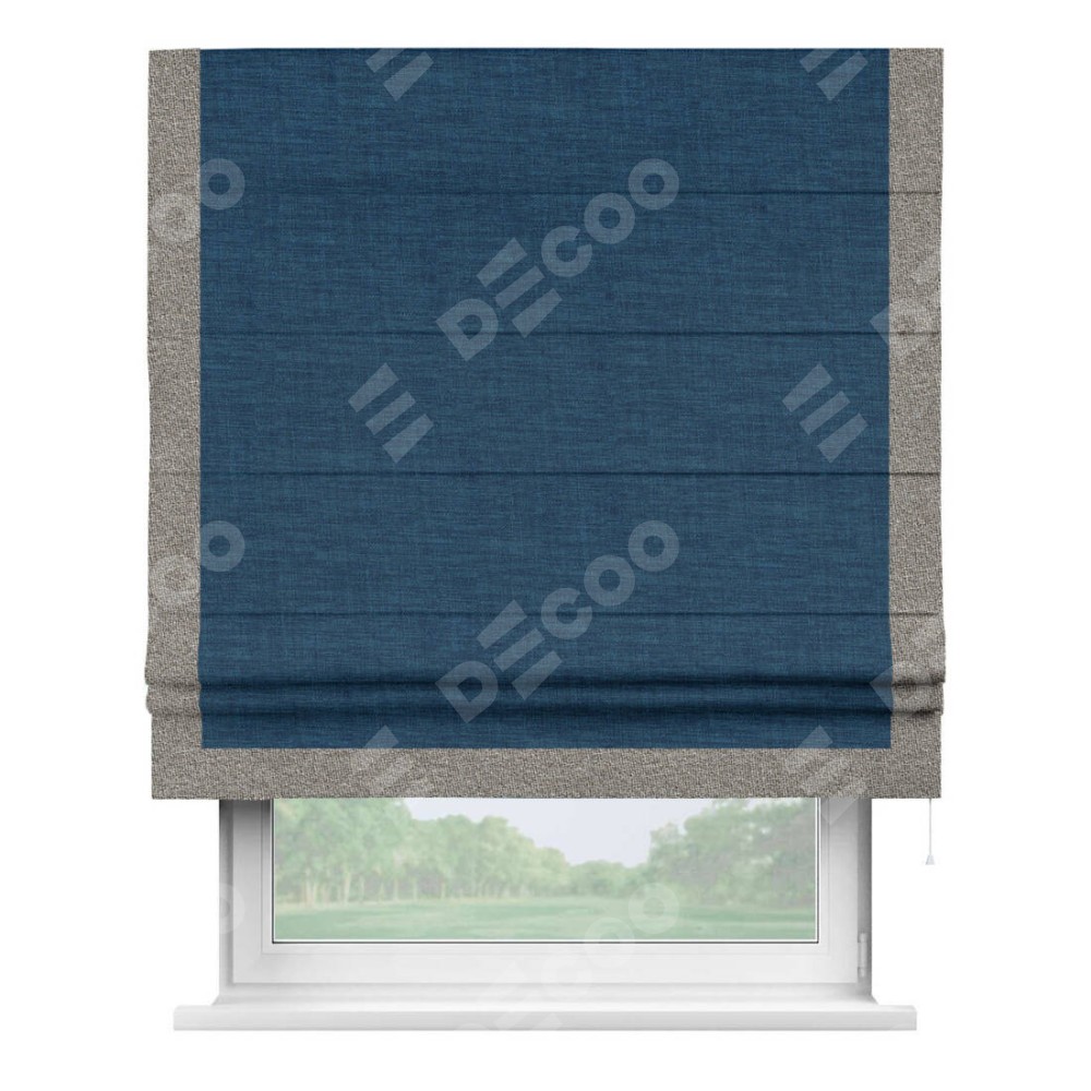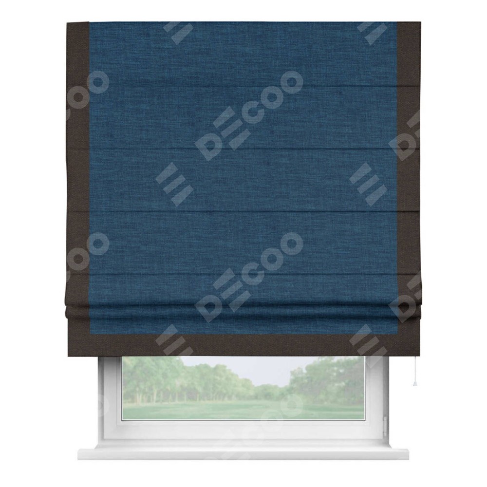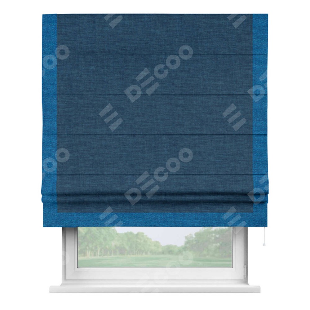 Римская штора «Кортин» для проёма, лён синий, с кантом Виктория