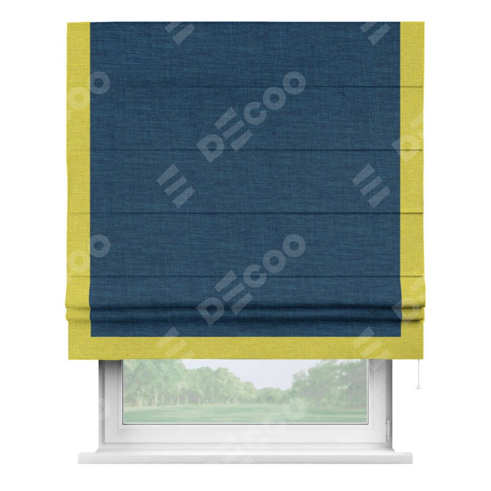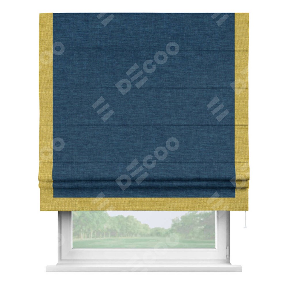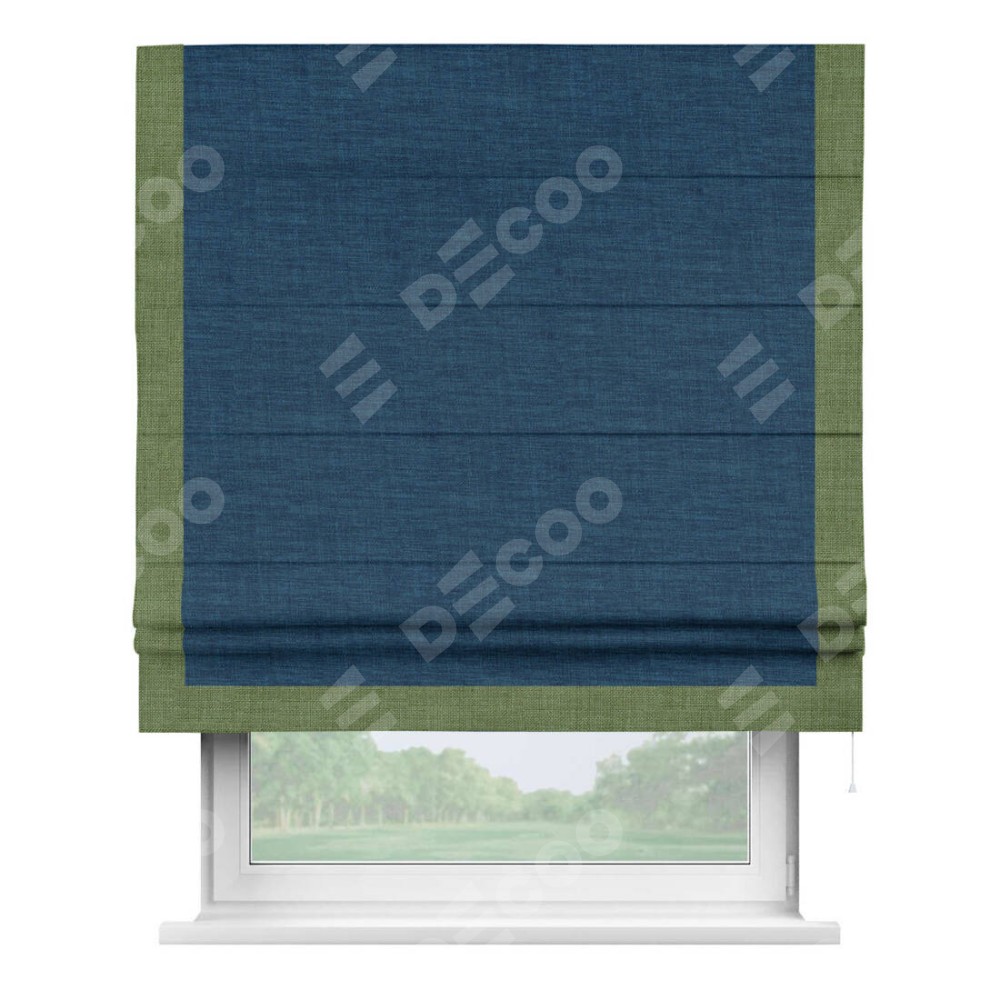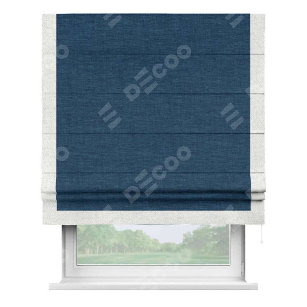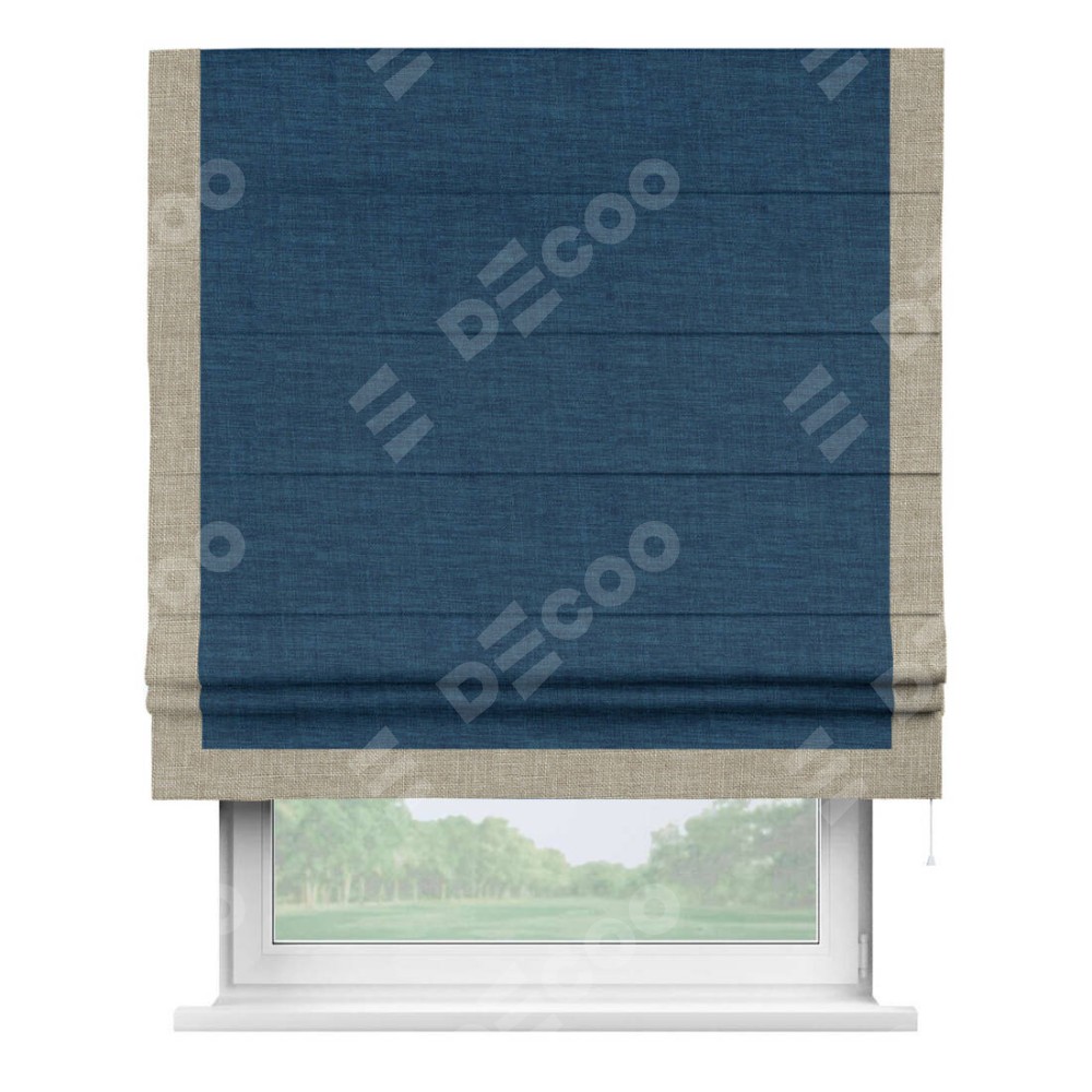 Римская штора «Кортин» для проёма, лён синий, с кантом Виктория