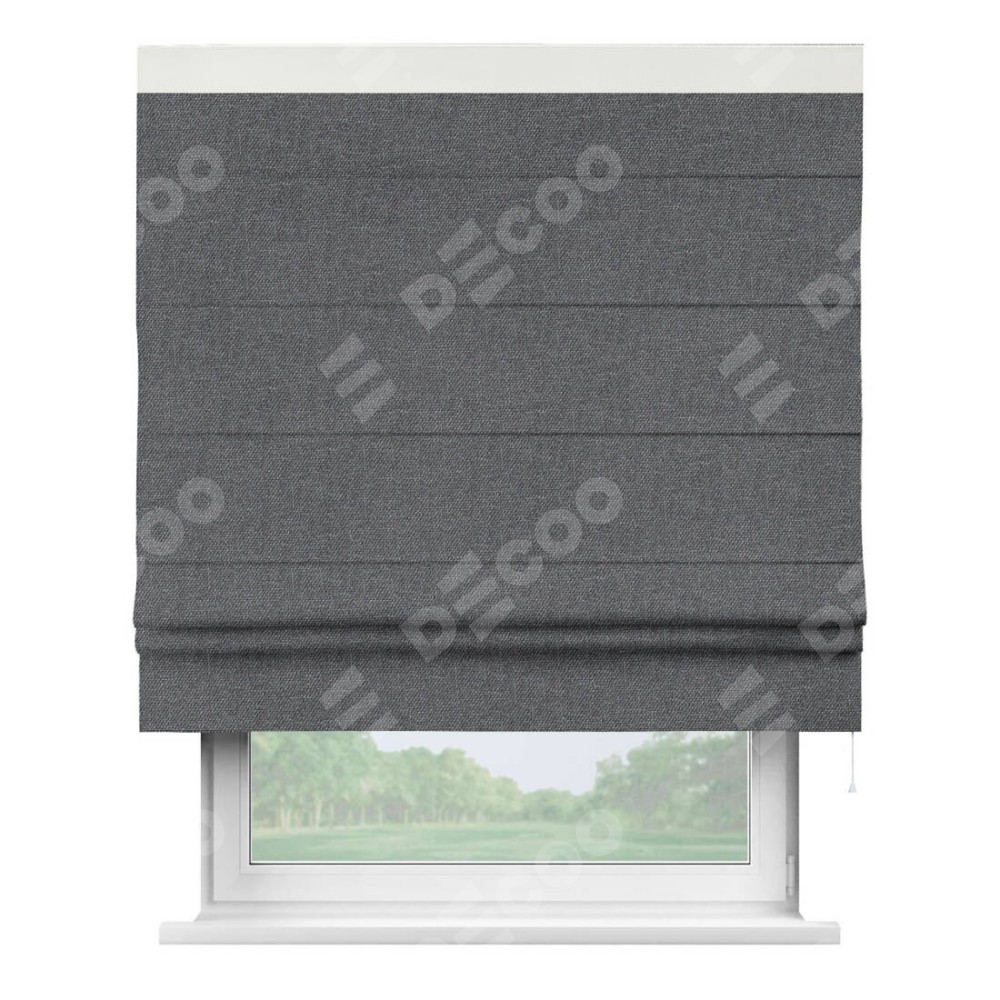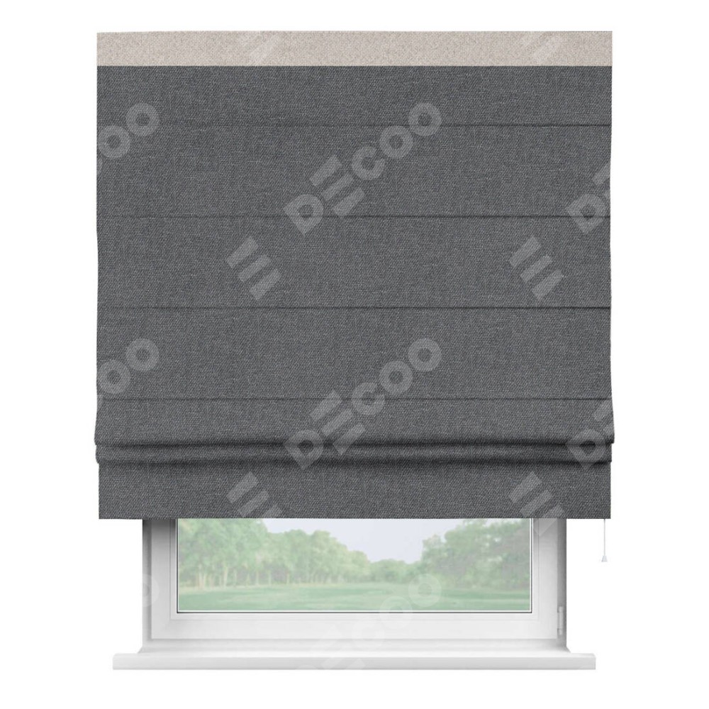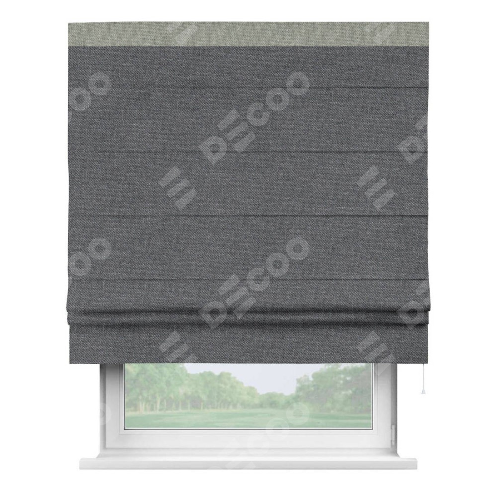 Классическая римская штора производителя «Cortin», пошита из ткани лён димаут графит, артикул: 140644. Имеет универсальный механизм и подходит для монтажа: на потолок, на стену и в нишу.