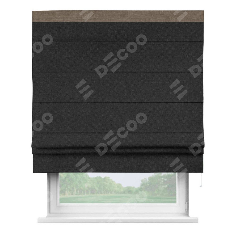 Римская штора «Кортин» для проёма, лён чёрный, с кантом Кинг
