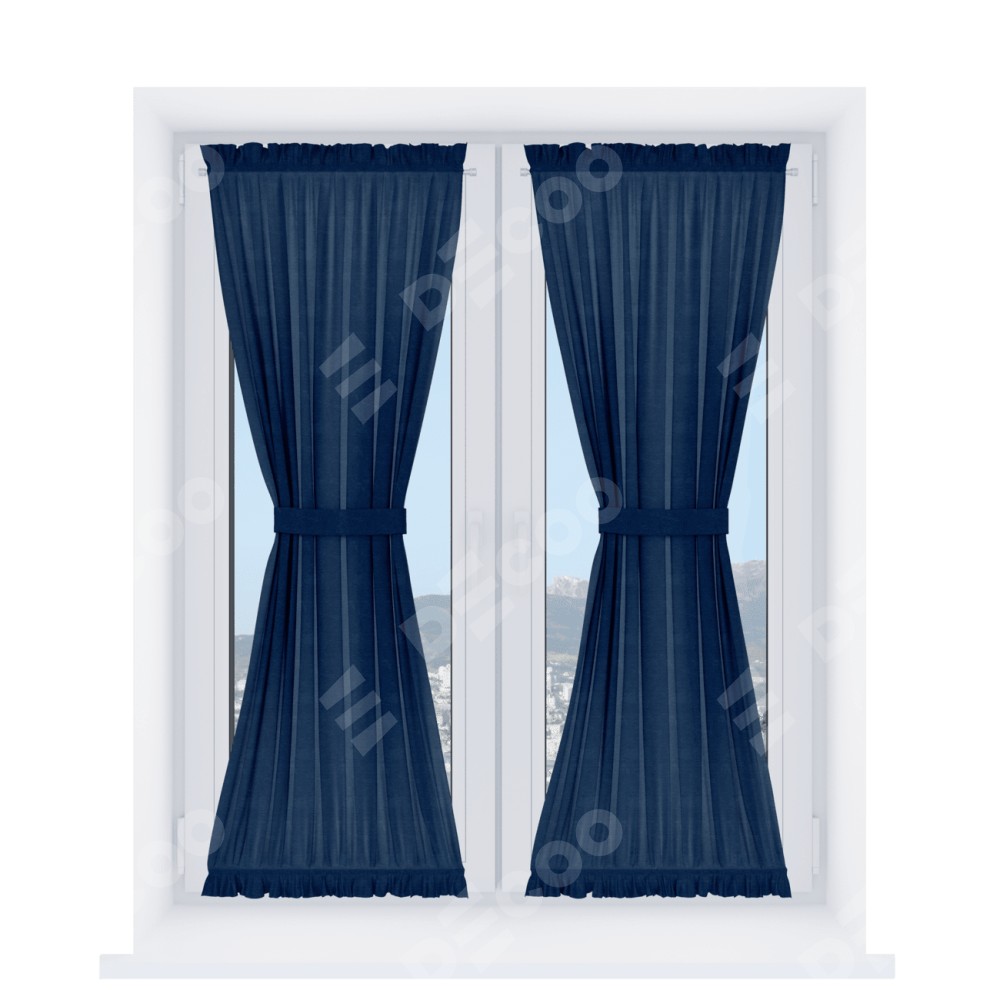 Штора «Песочные часы» производителя «Cortin», используется для створок окон и дверей, пошита из ткани софт однотонный синий, артикул ткани 42937.