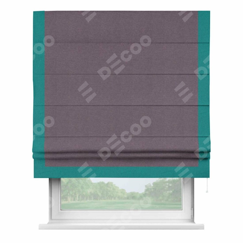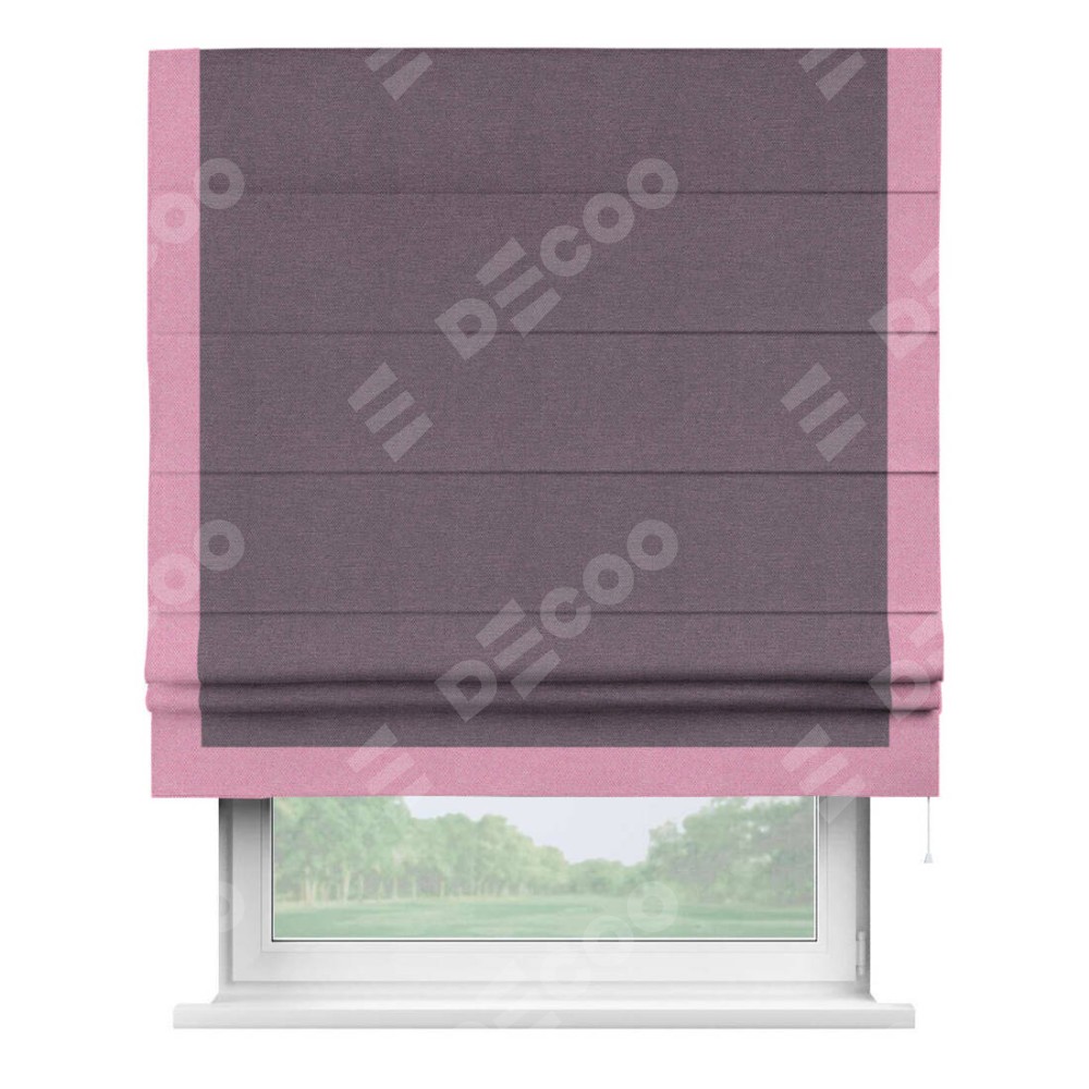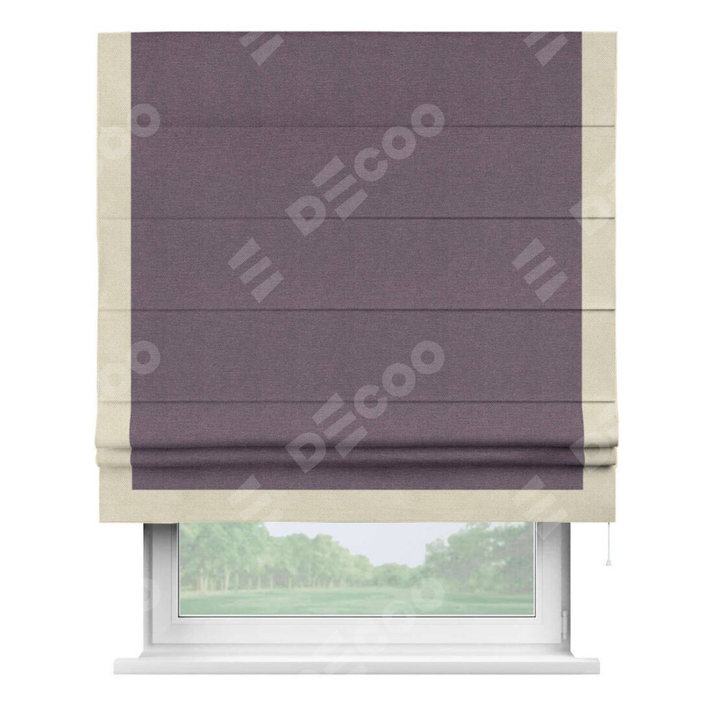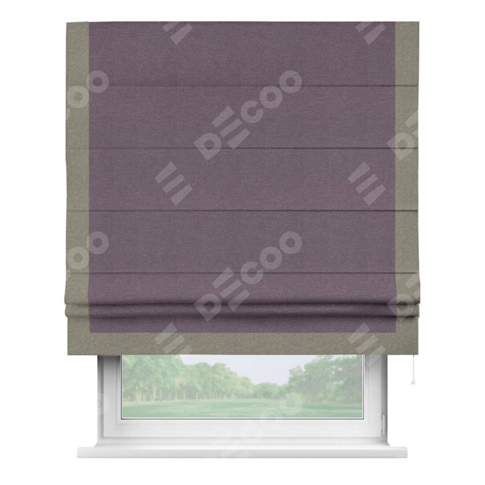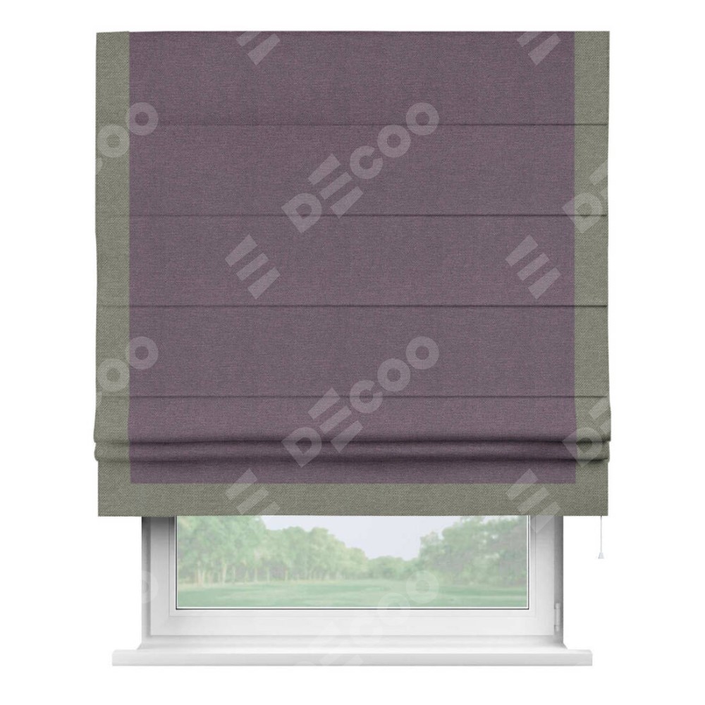 Римская штора «Кортин» с кантом Виктория, для проема, ткань лён димаут, светло-фиолетовый