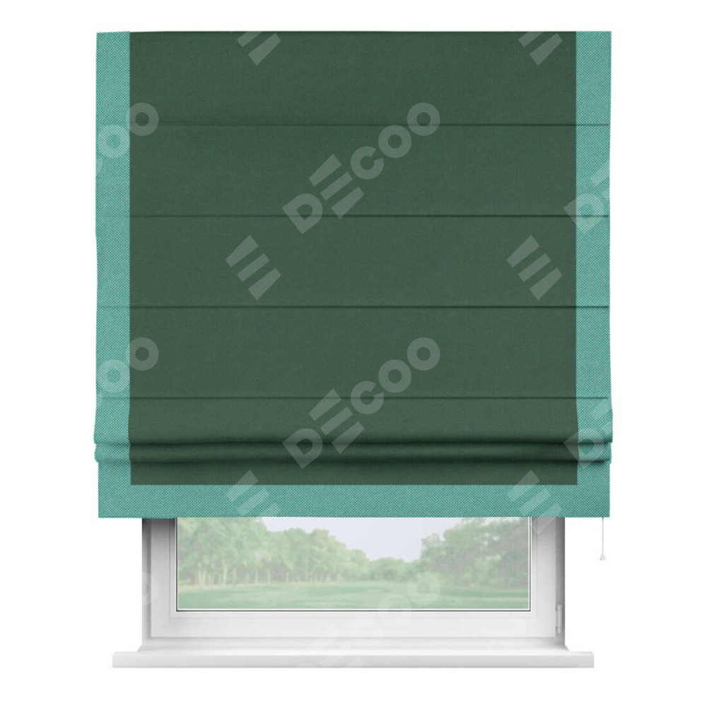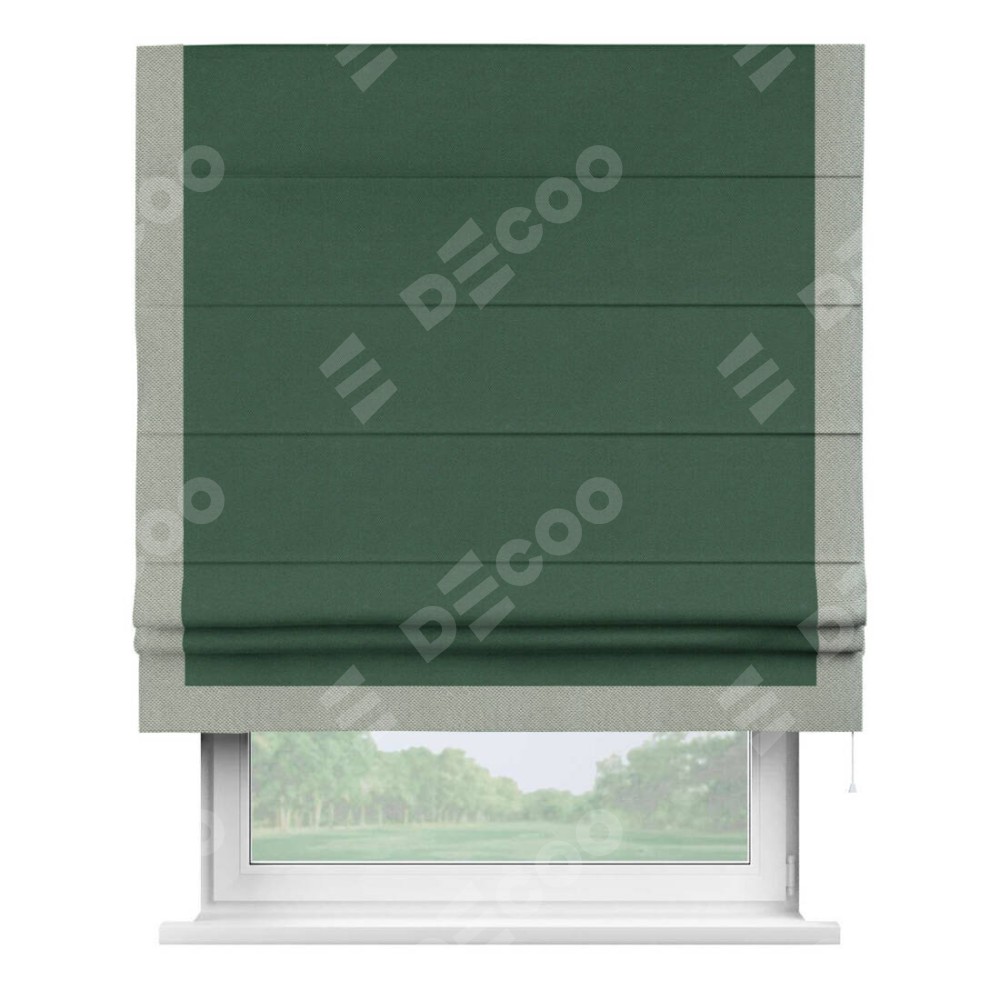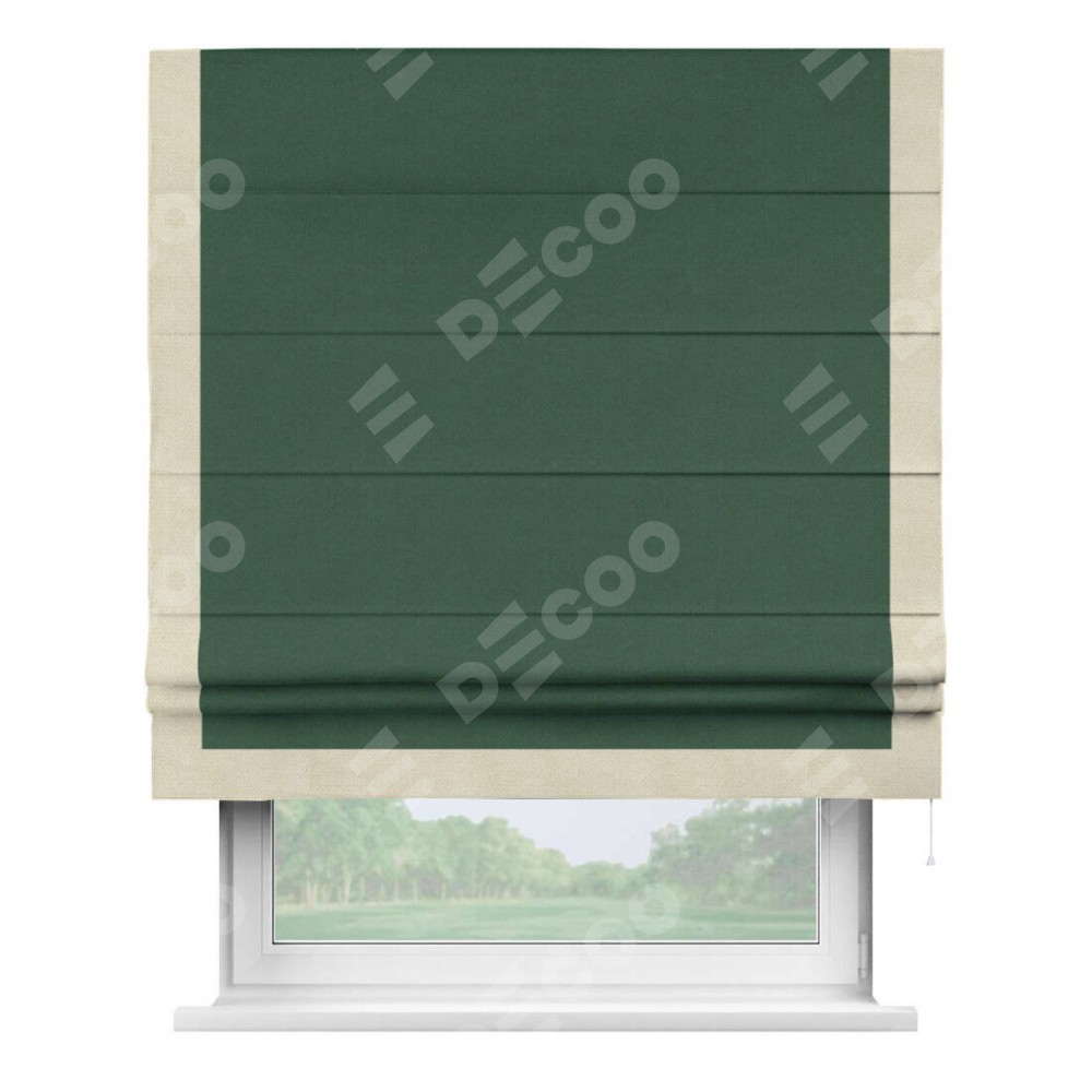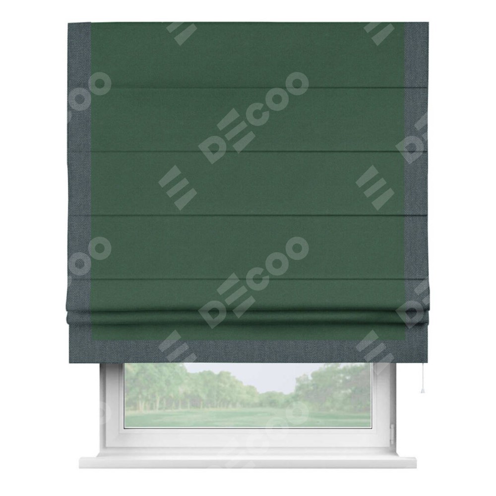 Римская штора «Кортин» с кантом Виктория, для проема, ткань лён димаут, тёмно-зелёный