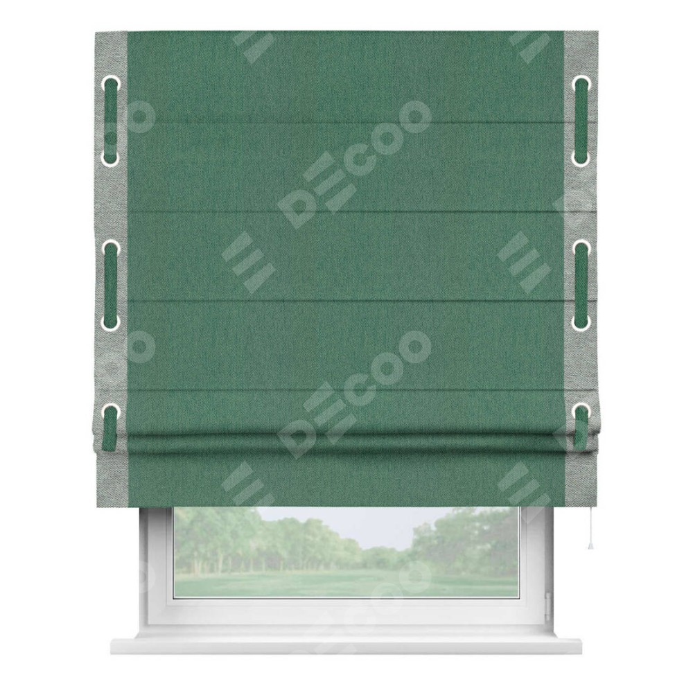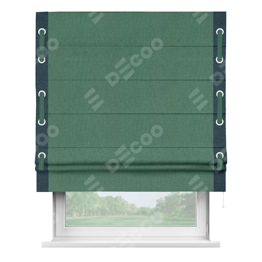 Римская штора «Кортин» с кантом Стрим Дуо (люверсы с пояском), для проема, ткань твид блэкаут, зелёный