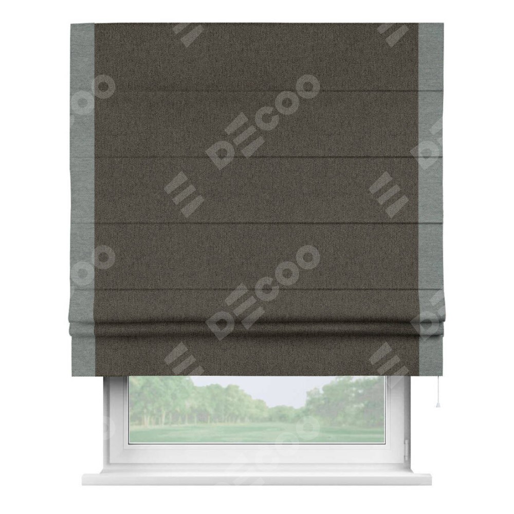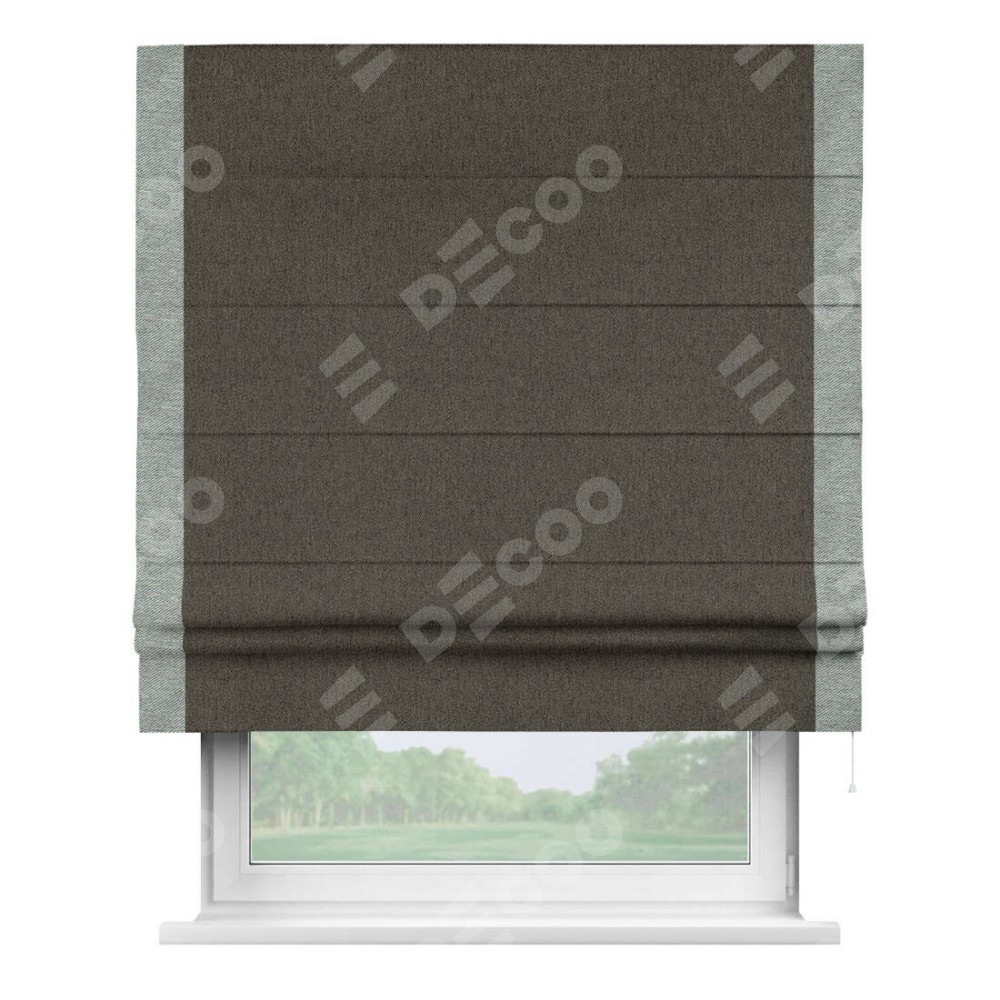 Римская штора «Кортин» с кантом Стрим Дуо, для проема, ткань твид блэкаут, тёмно-коричневый