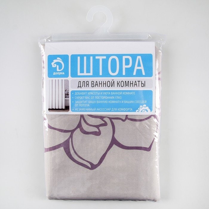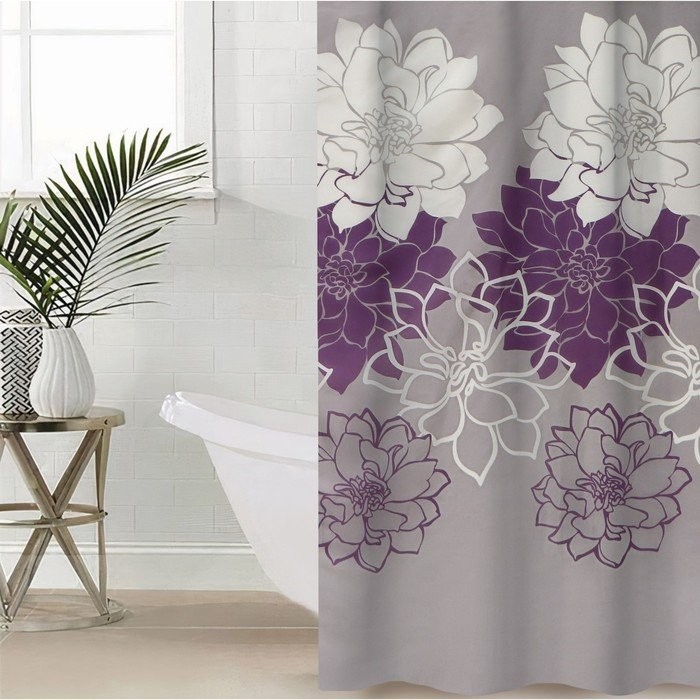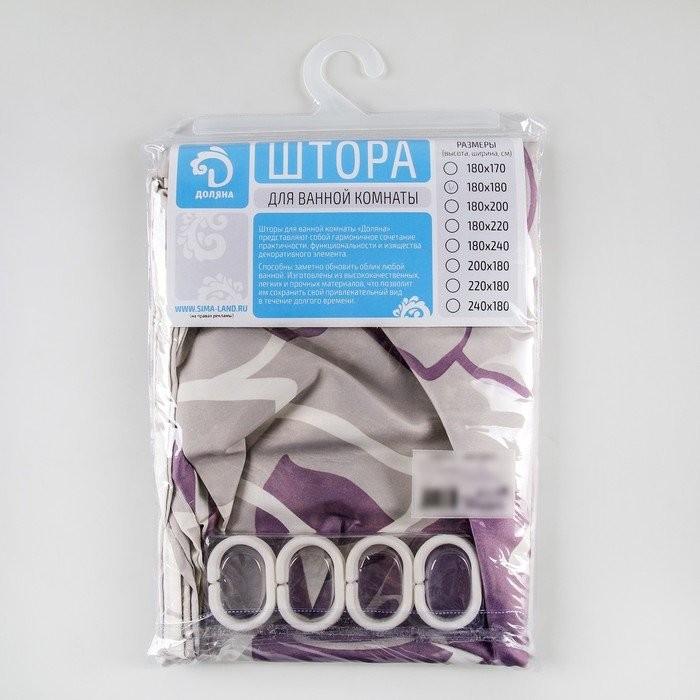 Штора для ванной комнаты Доляна «Большие цветы», 180×180 см, полиэстер, цвет сиреневый