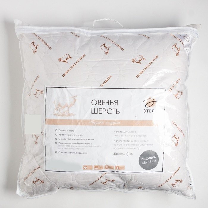 Нежная, удобная и такая красивая подушка «Этель» Овечья шерсть подарит вам только добрые сновидения и по-настоящему прекрасное утро.