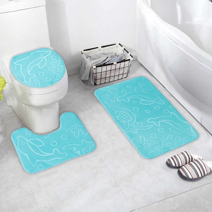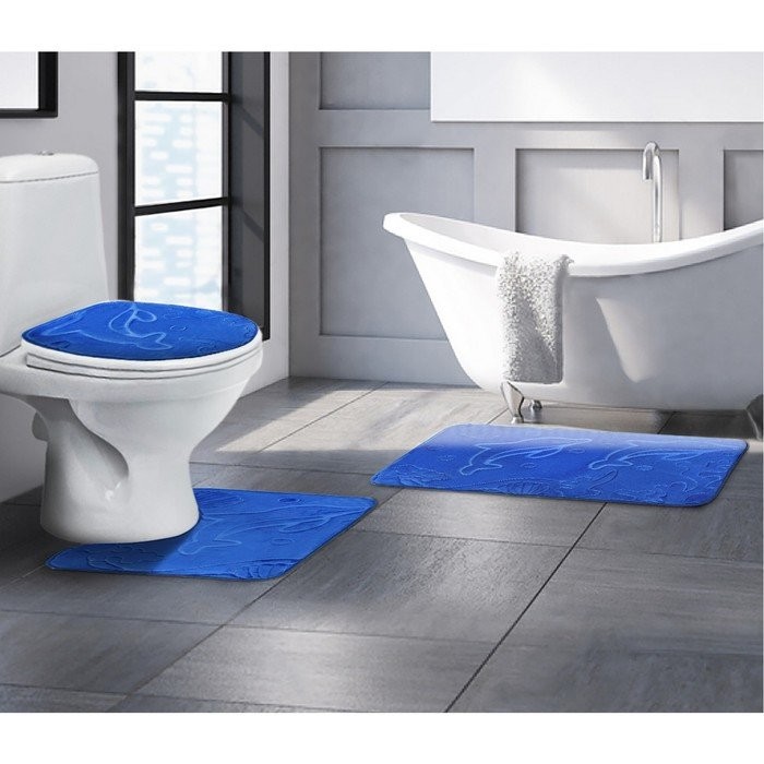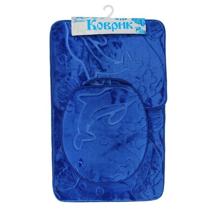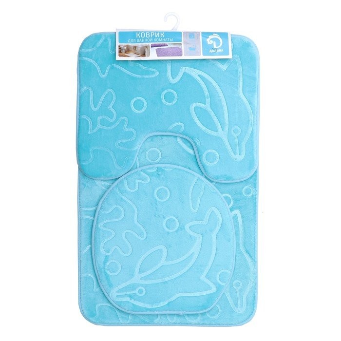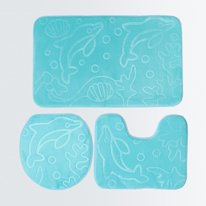 Набор ковриков для ванны и туалета Доляна «Дельфины», 3 шт: 39×43, 40×50, 50×80 см, цвет МИКС