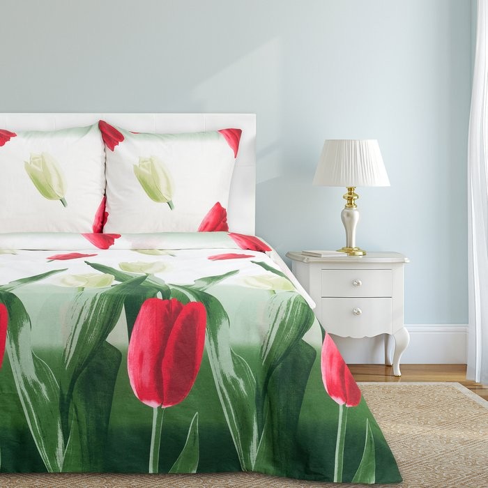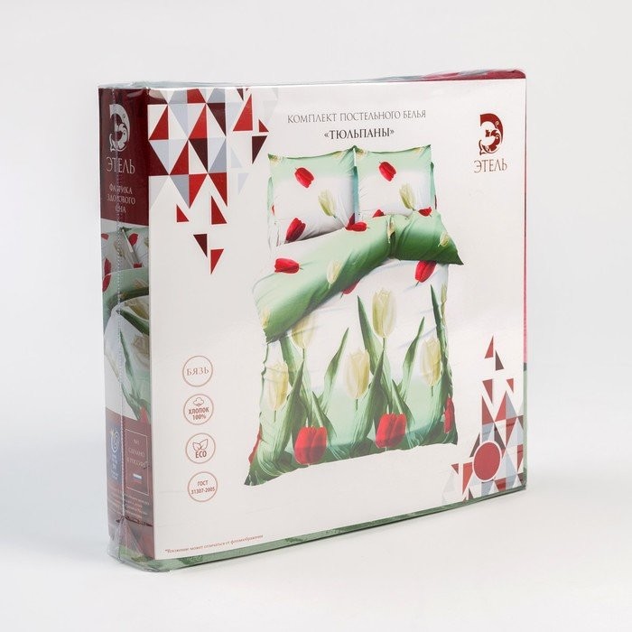Постельное бельё «Этель» евро Тюльпаны 200×217 см, 240*220 см, 70×70 см — 2 шт., 100% хлопок, бязь 125 г/м²
