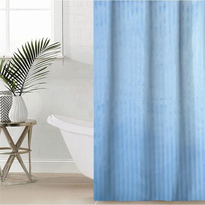 Штора для ванной комнаты Доляна «Полоска», 180×180 см, полиэстер, цвет голубой