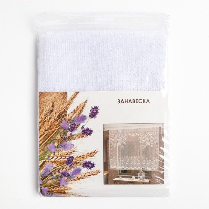 Штора кухонная без шторной ленты, ширина 170 см, высота 160 см, цвет белый