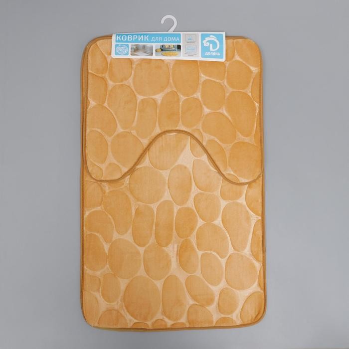 Набор ковриков для ванны и туалета Доляна «Камни», объёмные, 2 шт: 40×50, 50×80 см, цвет бежевый