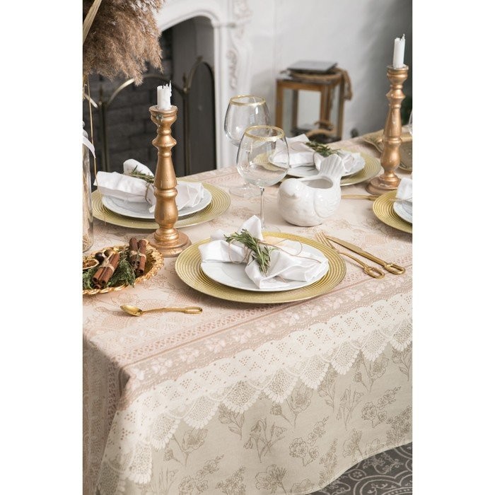 Скатерть «Доляна» Кружево 145×146 см, 100% хлопок, рогожка, 164 г/м2
