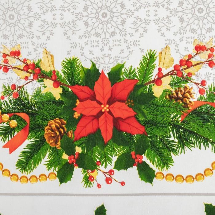 Скатерть украсит праздничный интерьер. Изделия с эксклюзивным принтом сшиты из хлопкового полотна. Этот материал имеет плотную и упругую структуру, обладает высокой прочностью и на ура справляется с первостепенными задачами: