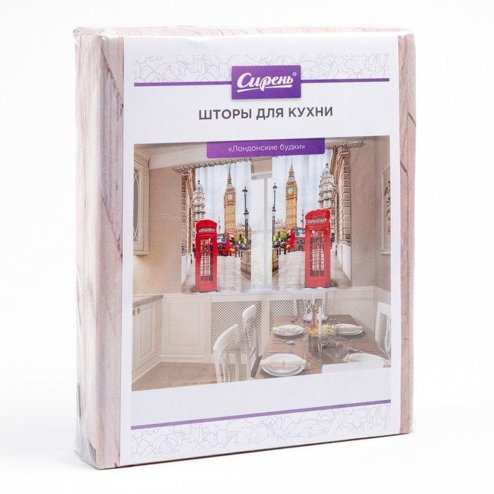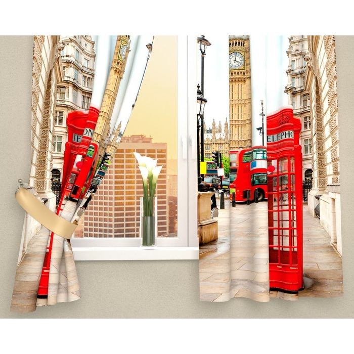 Фотошторы кухонные «Лондонские будки», размер 145×160 см — 2 шт., габардин