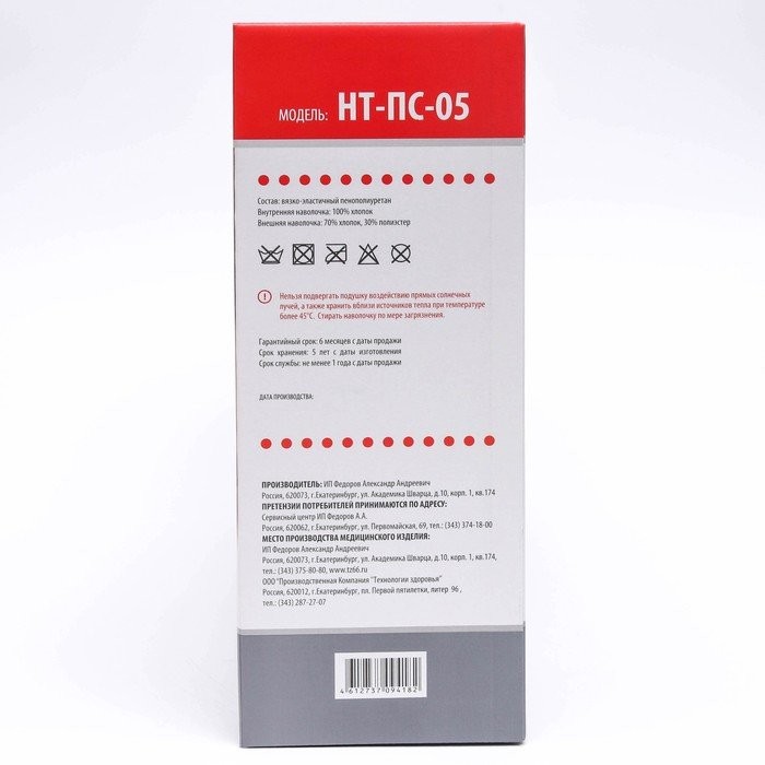 - Внешняя наволочка: хлопок (70%), полиэстер (30%).