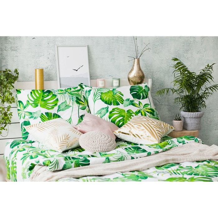Постельное бельё «Этель» 2 сп., Монстера, размер 175×215 см, 200×220 см, 70×70 см — 2 шт