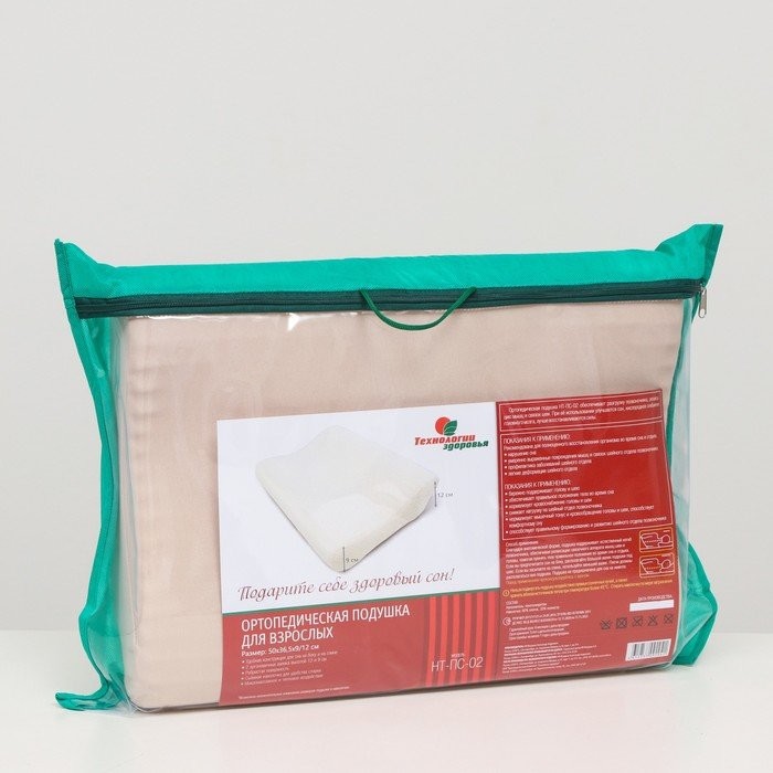 Подушка ортопедическая НТ-ПС-02, для взрослых, 50×36.5 см, валики 9/12 см