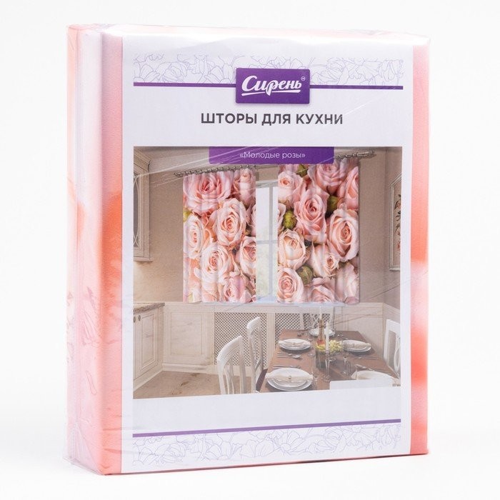 Фотошторы кухонные «Молодые розы», размер 145×160 см — 2 шт., габардин