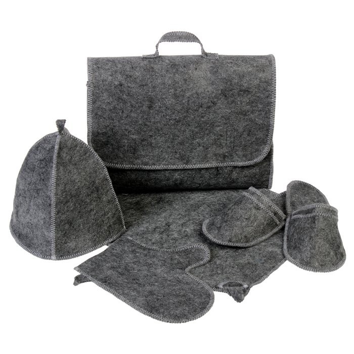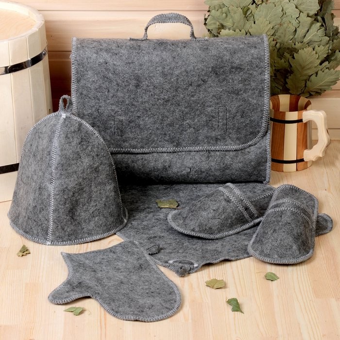 Для комфортного отдыха в парной возьмите с собой набор банных принадлежностей. Предметы из этого комплекта предохраняют тело от перегрева и являются средствами индивидуального пользования. Влажные изделия рекомендуется сушить в расправленном виде на горизонтальной поверхности. Принадлежности из войлока и фетра стирайте вручную при температуре воды 30 °C.