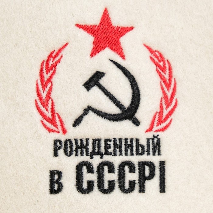Шапка для бани с вышивкой «Рожденный в СССР, серп и молот», первый сорт