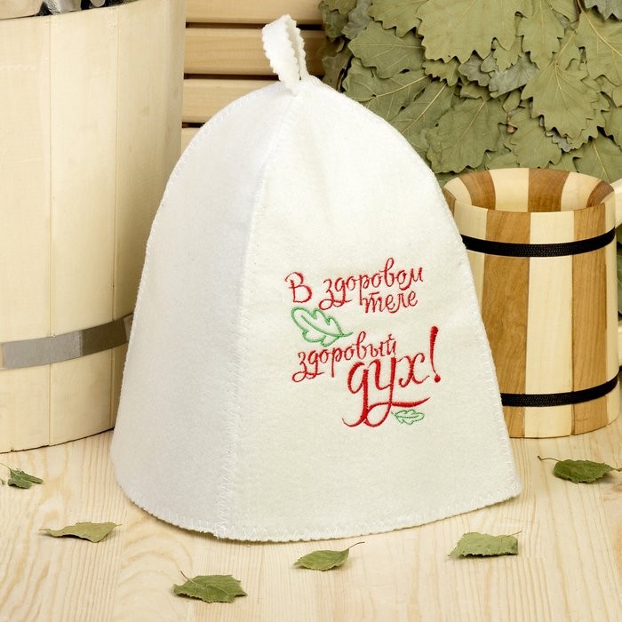 Шапка для бани с вышивкой «В здоровом теле здоровый дух», первый сорт