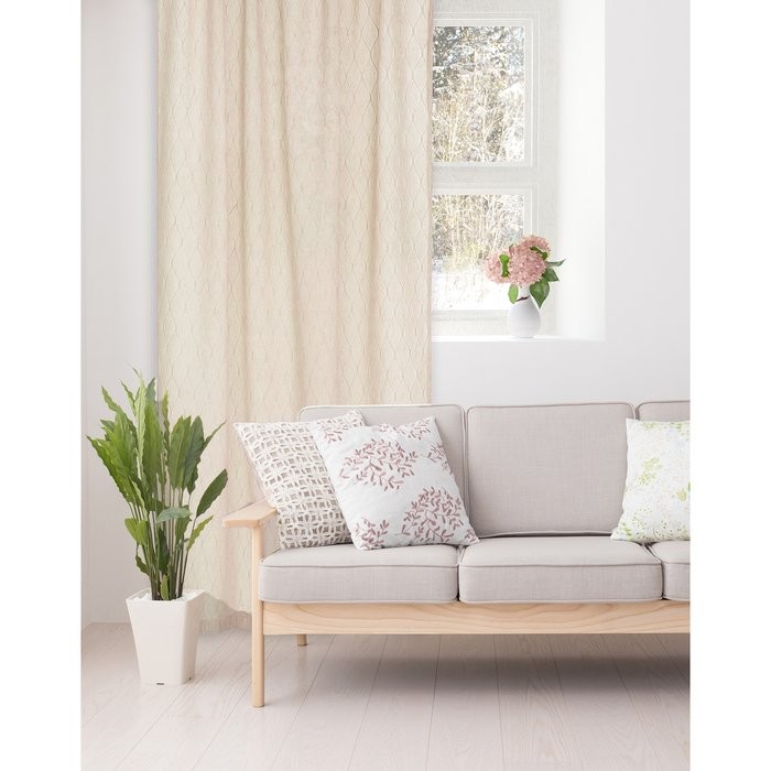 Штора портьерная «Этель» Плавные ромбы 135×270 см. пл. 160 г/м² цв. бежевый, 100% п/э