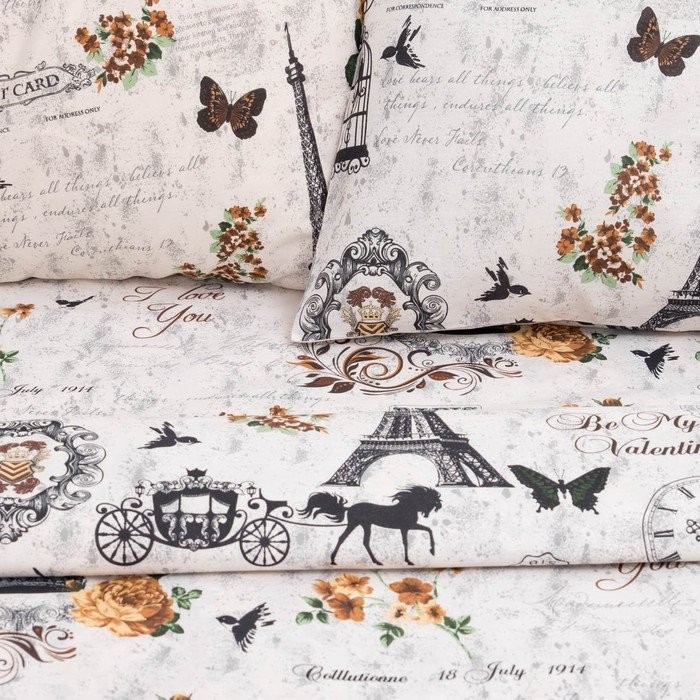 Постельное бельё «Этель» 1,5 сп. Парижские сезоны143×215 см, 150×214 см, 70×70 см — 2 шт., 100% хлопок, бязь 125 г/м²