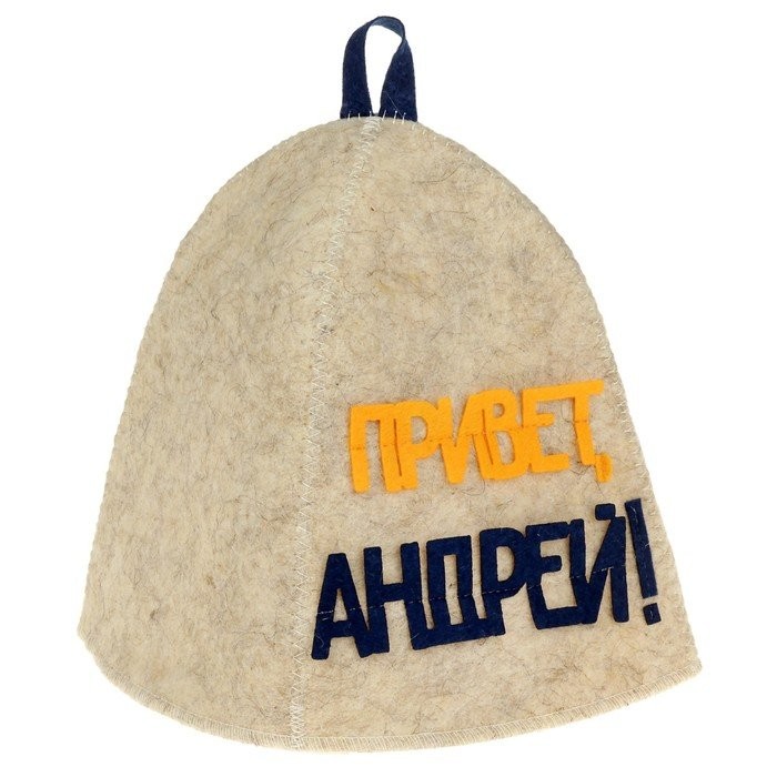 Шапка для бани с аппликацией «Привет, Андрей!»