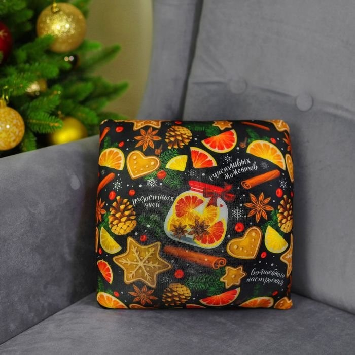 Подушка декоративная «Пожелания», новогодняя, вкусняшки, 23×23 см