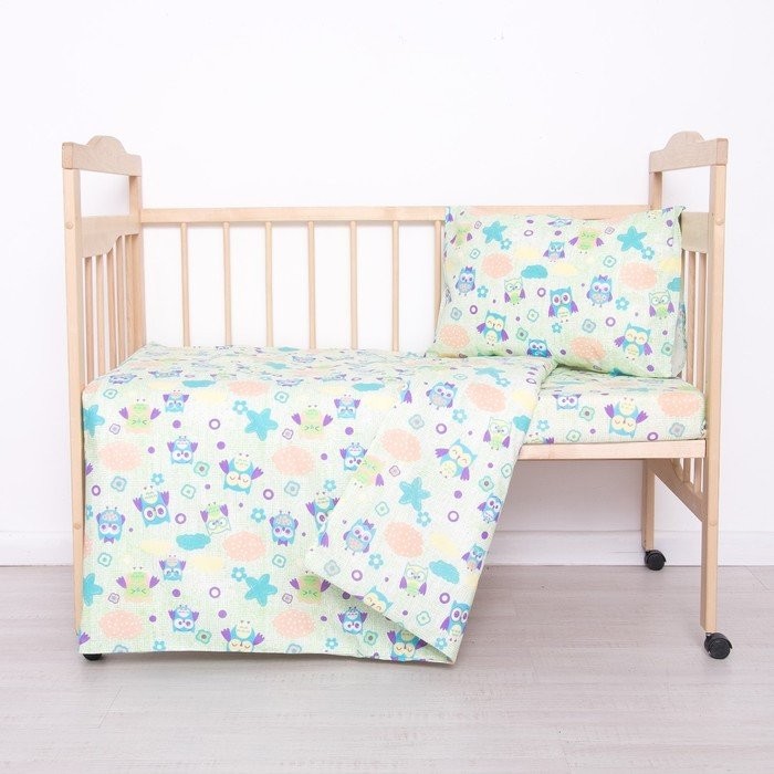 Постельное бельё Galtex «Совушки» фисташка, 147×112, 100×150, 40х60см -1 шт