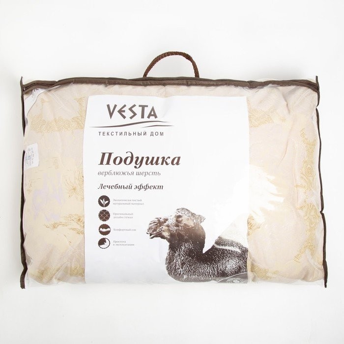 Подушка стёганная 50×70 см, шерсть верблюда, ткань глосс-сатин, п/э 100%