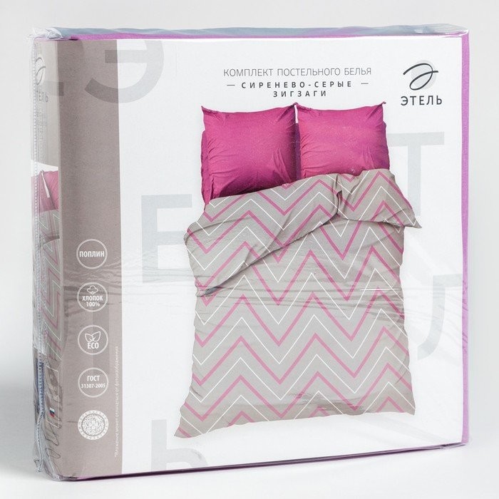 Постельное бельё Этель 1,5 сп «Сиренево-серые зигзаги» 143х215см, 150х214см, 70х70см-2 шт