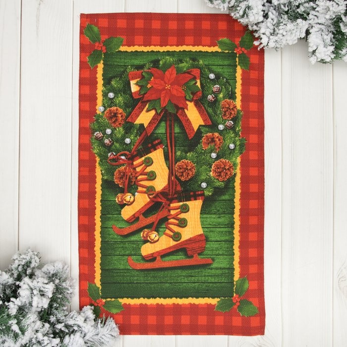 Полотенце «Новогодний венок» 35×60 см, 100% хл, вафельное полотно 162г/м2