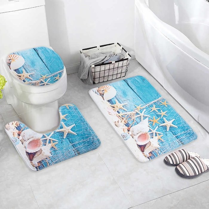 Набор ковриков для ванны и туалета Доляна «Ракушки», 3 шт: 37×45, 37×45, 45×75 см