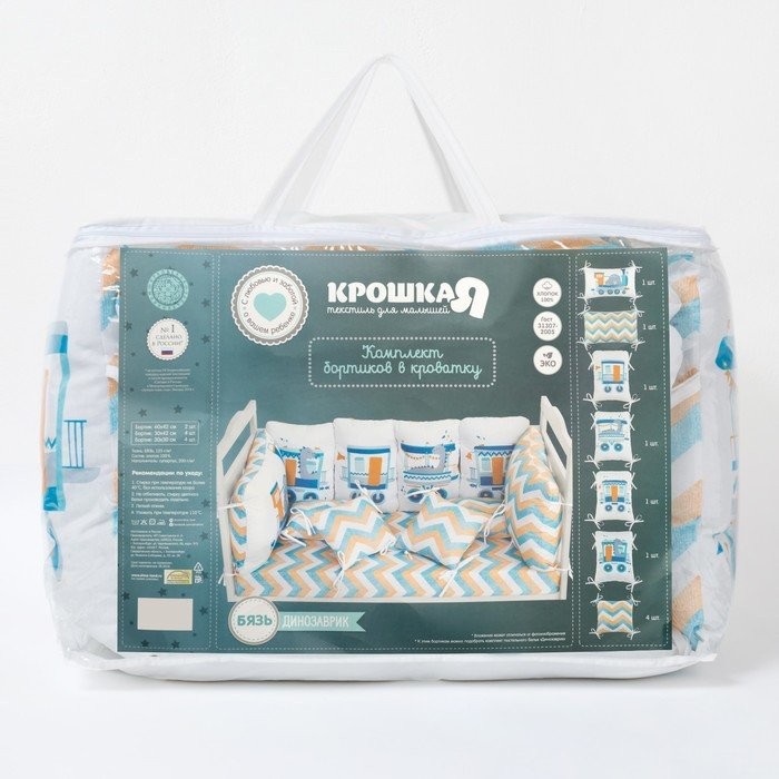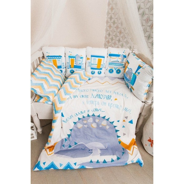 Бортики в кроватку Крошка Я «Динозаврик» (60х42см- 2шт, 30х42см- 4шт, 30х30см- 4шт), 100% хлопок