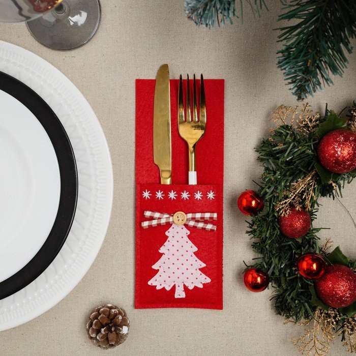 Конверт для столовых приборов «Елочка» 8,5×21 см, 100% п/э, фетр