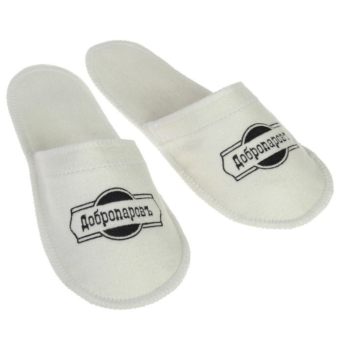 Тапочки для бани белые с черной с вышивкой «ДОБРОПАРОВЪ»