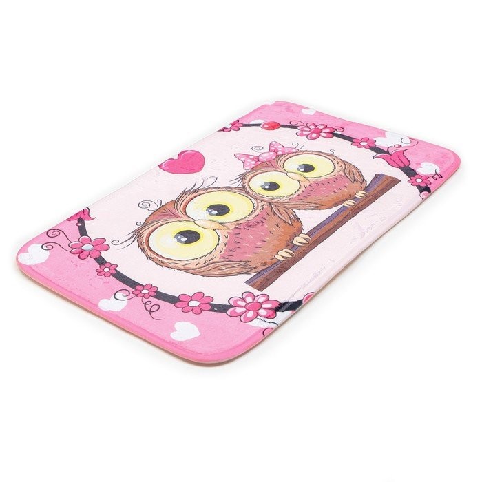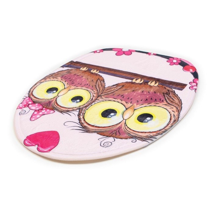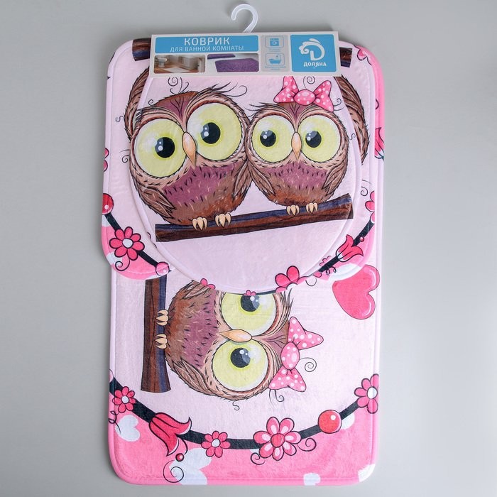 Набор ковриков для ванны и туалета Доляна «Совушки на ветке», 3 шт: 38×45, 40×43, 43×73 см, цвет розовый