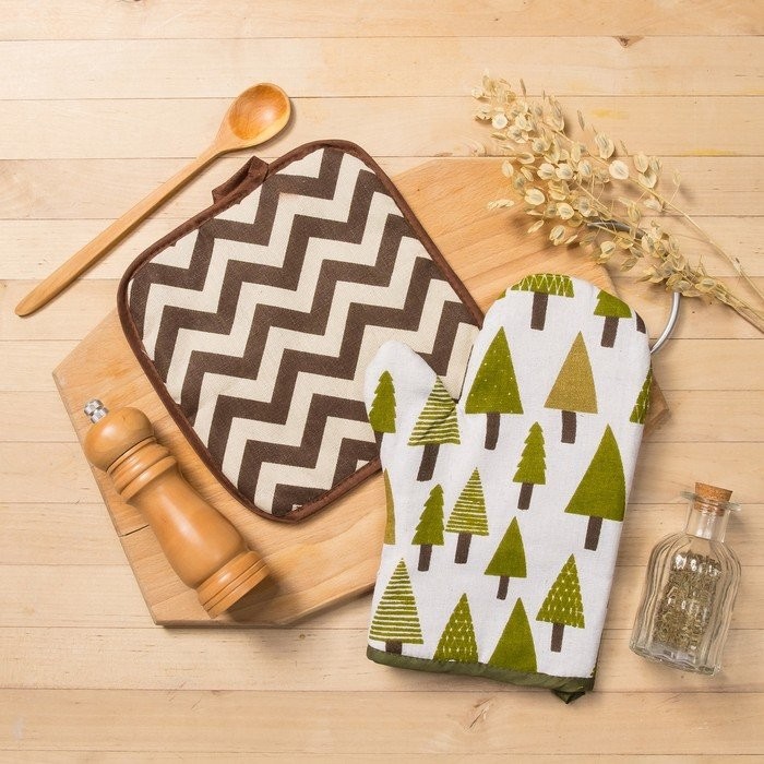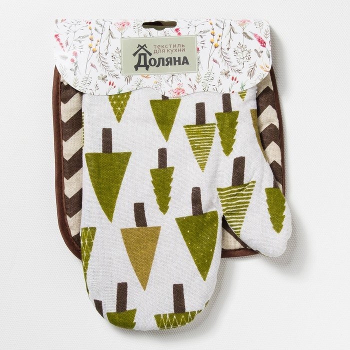 Набор Доляна, варежка+прихватка Хвойный лес/Зигзаг корич,100%пэ, рогожка 200 гр/м