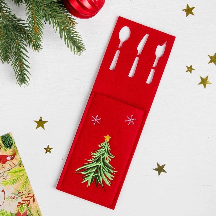 Конверт сделан из фетра и имеет праздничный дизайн.