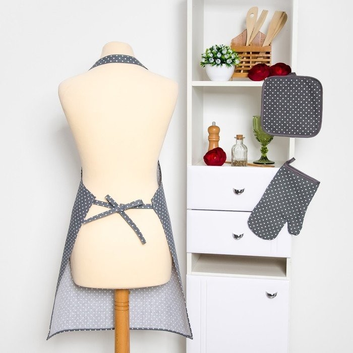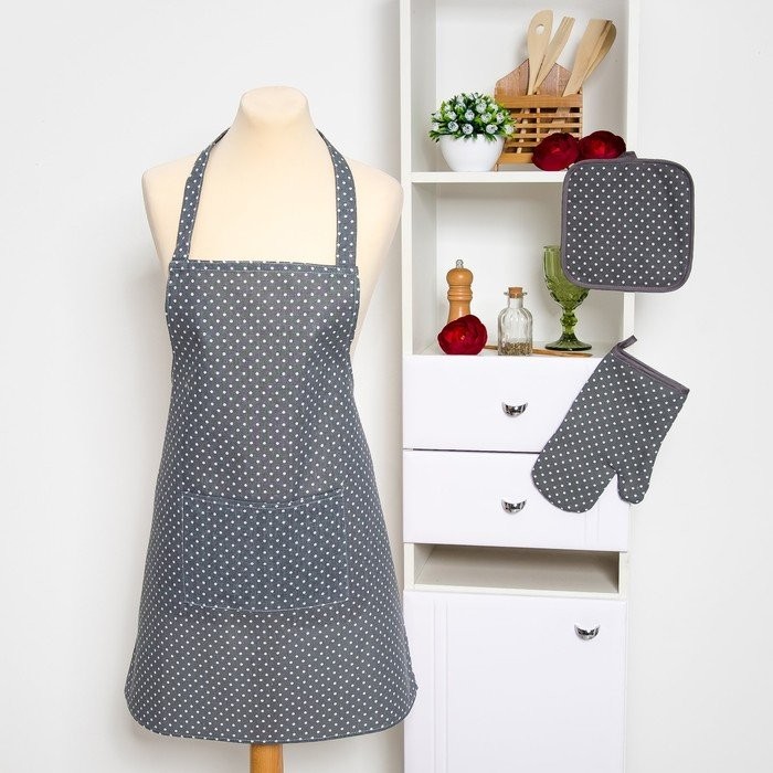 Набор Доляна фартук/прихватка/варежка, Горох сер, 100%пэ, рогожка 200 гр/м