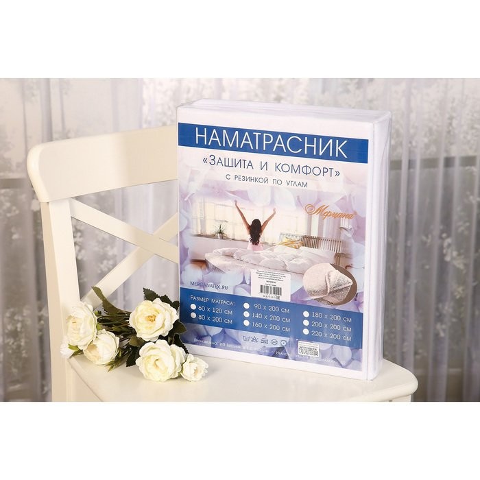 Наматрасник Защита и Комфорт с резинкой по углам 200×200 см, хл 80%, п/э 20%