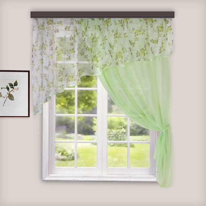 Комплект штор для кухни Византия 280×160 см, цв. св.зеленый правая, пэ 100%