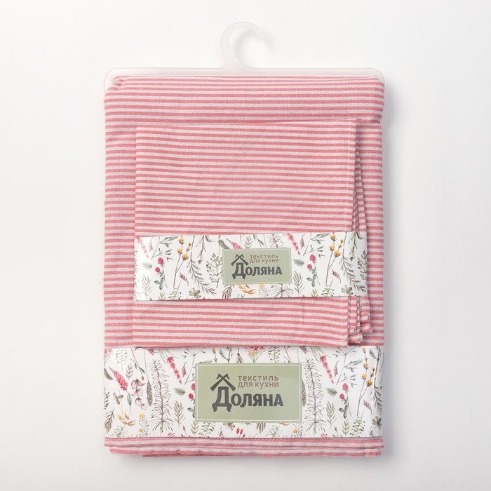 Набор Доляна скатерть 145х200см/салфетки 40х40см 4шт, Розовые полоски, 100%пэ,рогожка 200 гр/м 358
