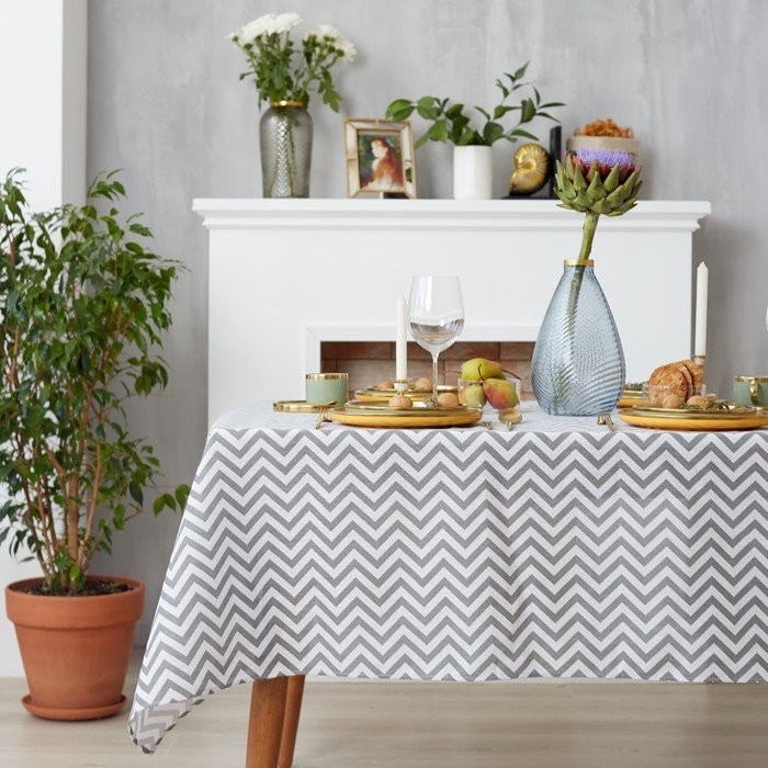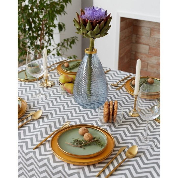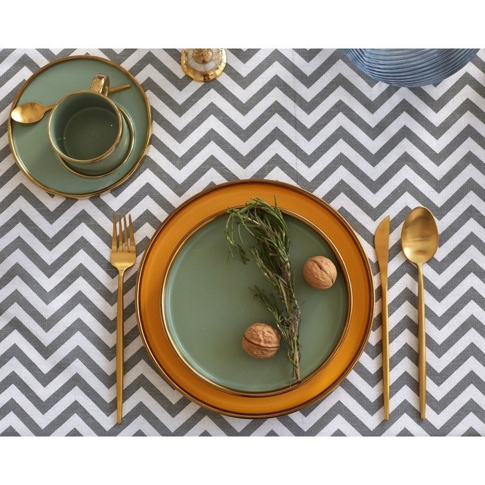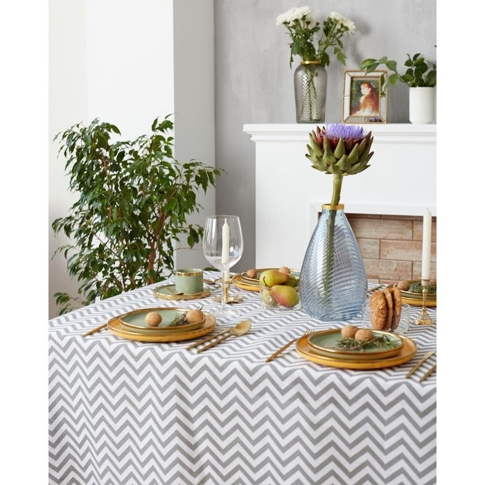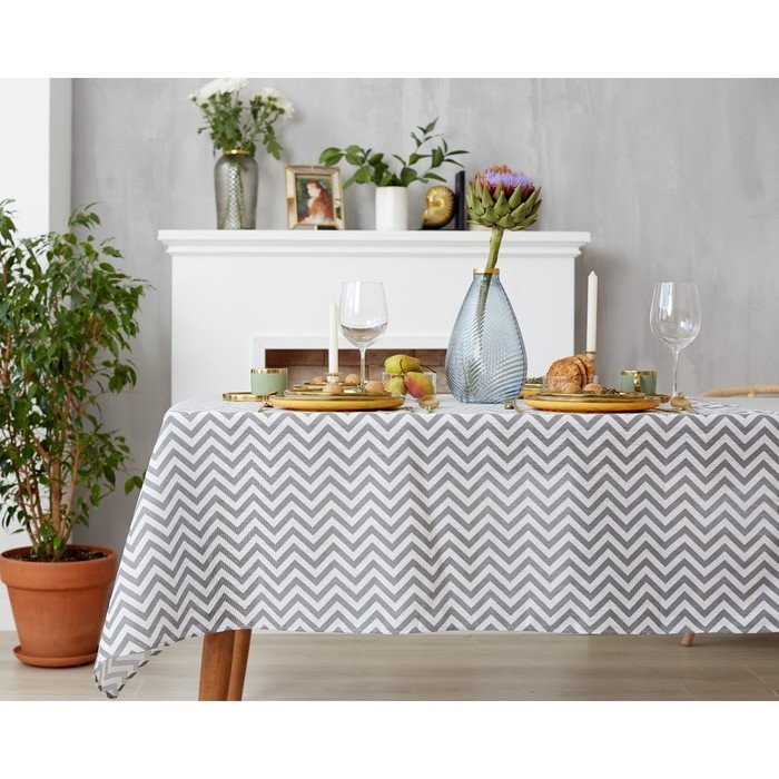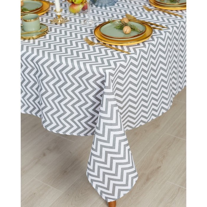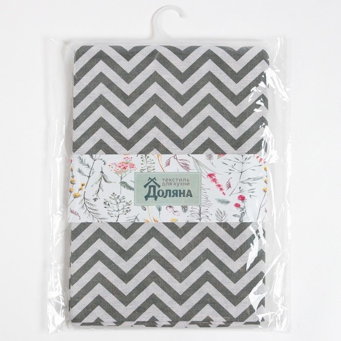 Набор Доляна скатерть 145х200см/салфетки 40х40см 4шт, Зигзаг сер, 100%пэ, рогожка 200 гр/м