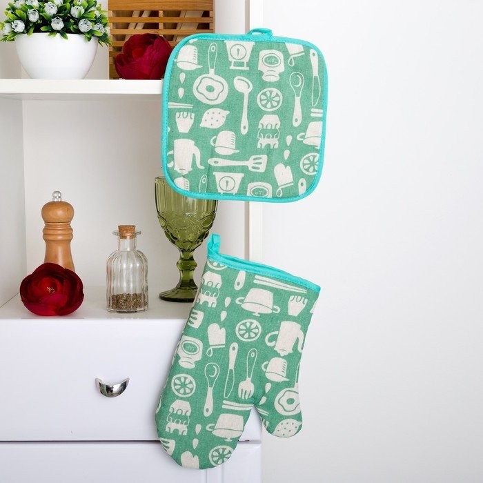 Набор Доляна фартук/прихватка/варежка, Кухня, 100%пэ, рогожка 200 гр/м