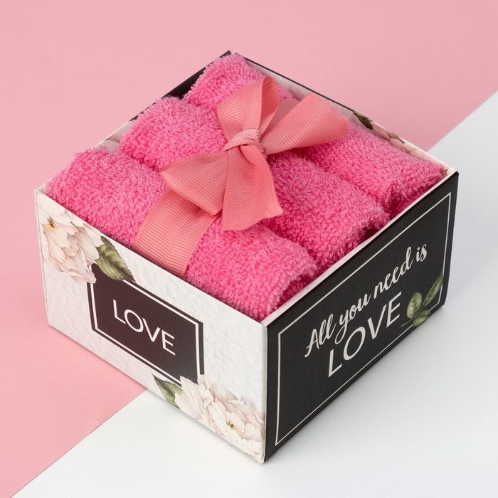 Набор махровых салфеток «С любовью» 30×30 см -3 шт, хлопок, 340г/м3