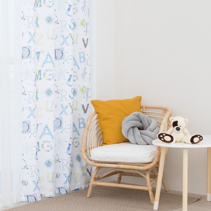 Портьера Крошка Я «Алфавит» без держателя цвет белый, 170×260 см, блэкаут, 100% п/э