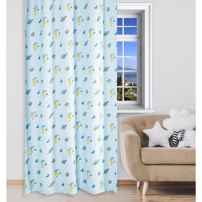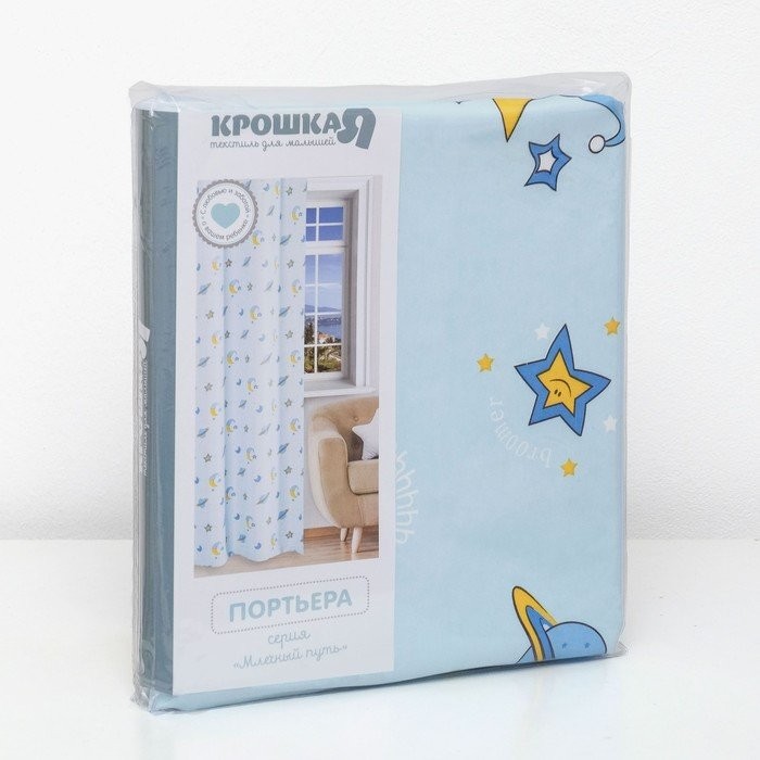Портьера Крошка Я «Млечный путь» без держателя цвет голубой, 170×260 см, блэкаут, 100% п/э